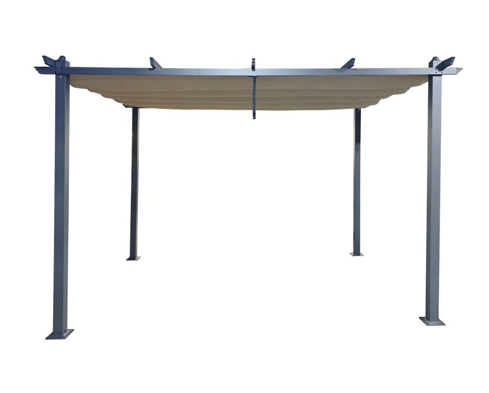 Pergolan jauhemaalattu teräsrunko on kestävä ja säänkestävä valinta ulkokäyttöön. Katoksena toimiva 180 g polyesterikangas PA-pinnoitteella suojaa auringolta ja kevyeltä sateelta, joten voit nauttia ulkoilmasta mukavammin koko kesän ajan. Taitettava katos antaa joustavuutta: voit säätää varjon määrää tilanteen ja sään mukaan.