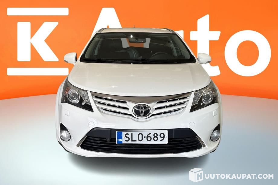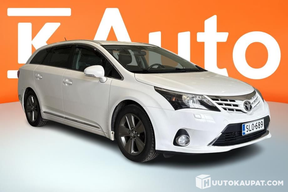 Siistikuntoinen valkoinen Toyota Avensis vuosimallia 2015.