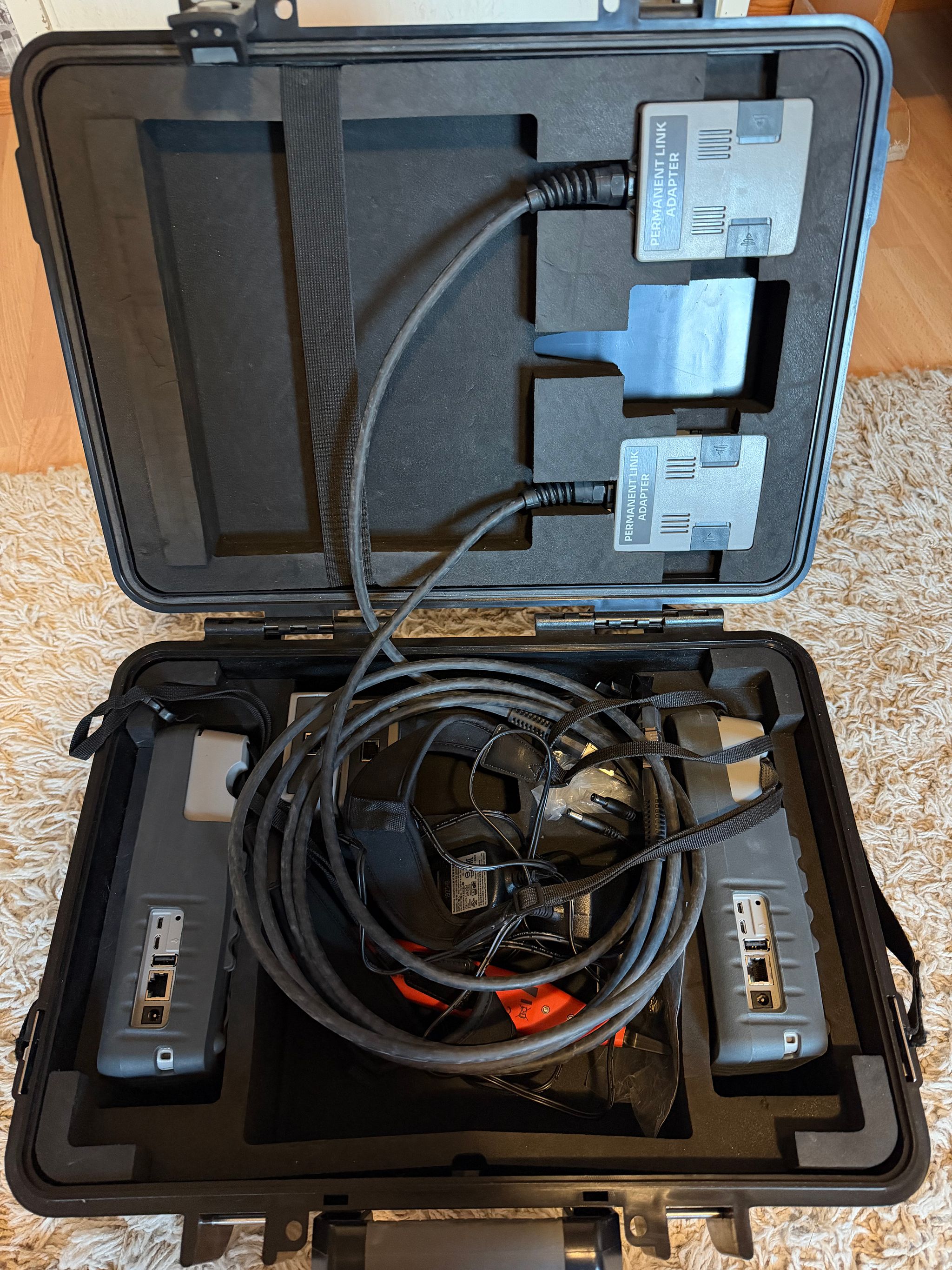 AEM TestPro CV100 -monitoimikaapelin sertifiointilaite. Teleurakointi Sorsa Oy konkurssipesä, Järvenpää