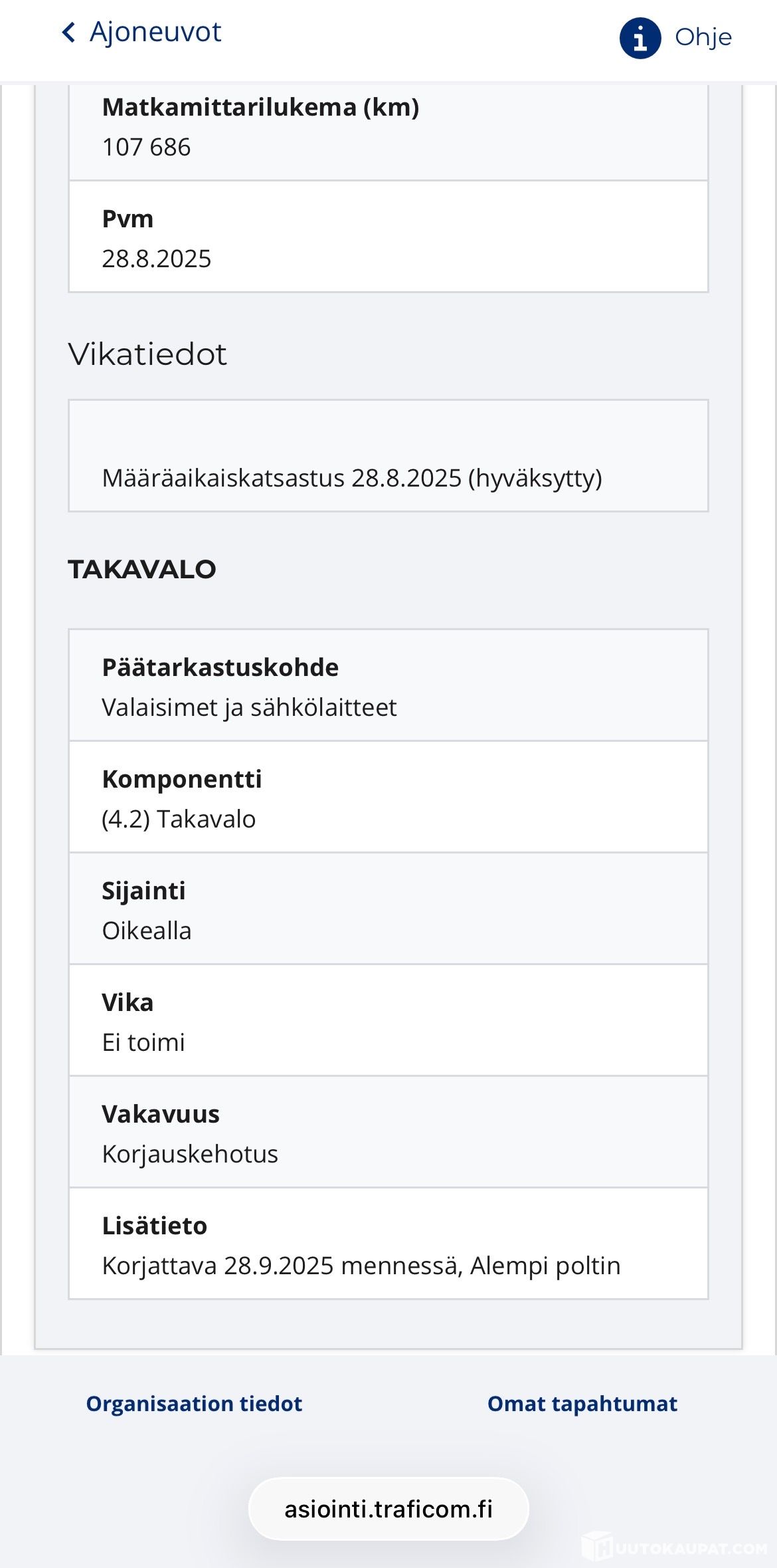 26.5.2021 Määräaikaiskatsastus hylätty (96 285 km)