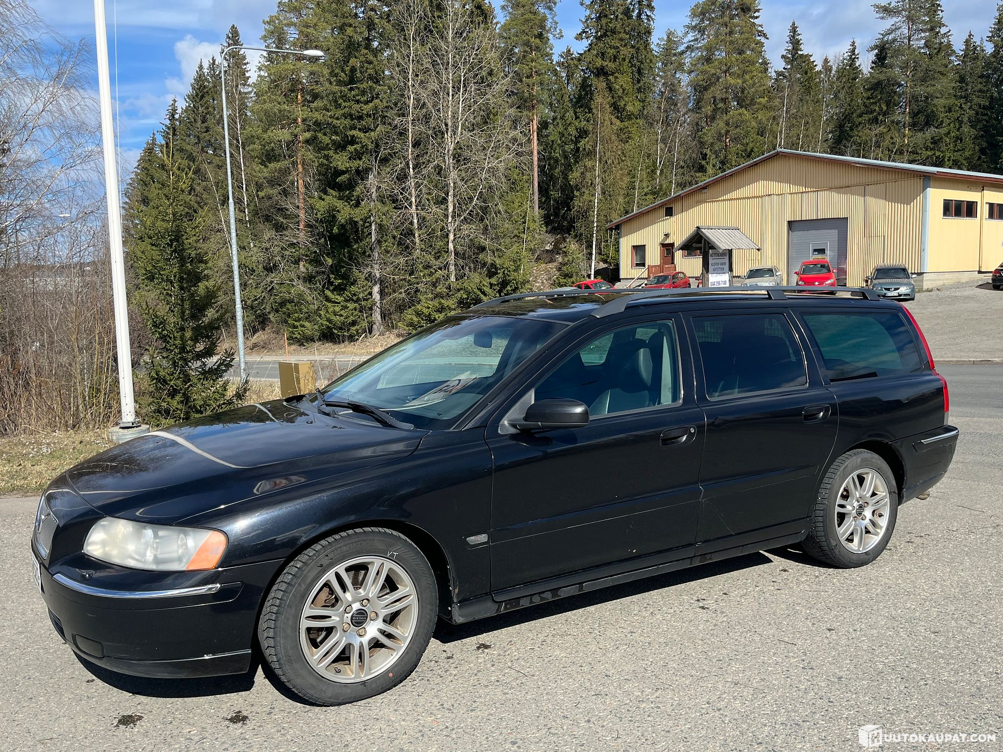 Vanha kunnon V70 sopivasti. Ohjaus takertelee muuten pienelle koeajolenkillä ok. Vain yhdet renkaat asialliset kitkat. Leimaa syyskuulle.