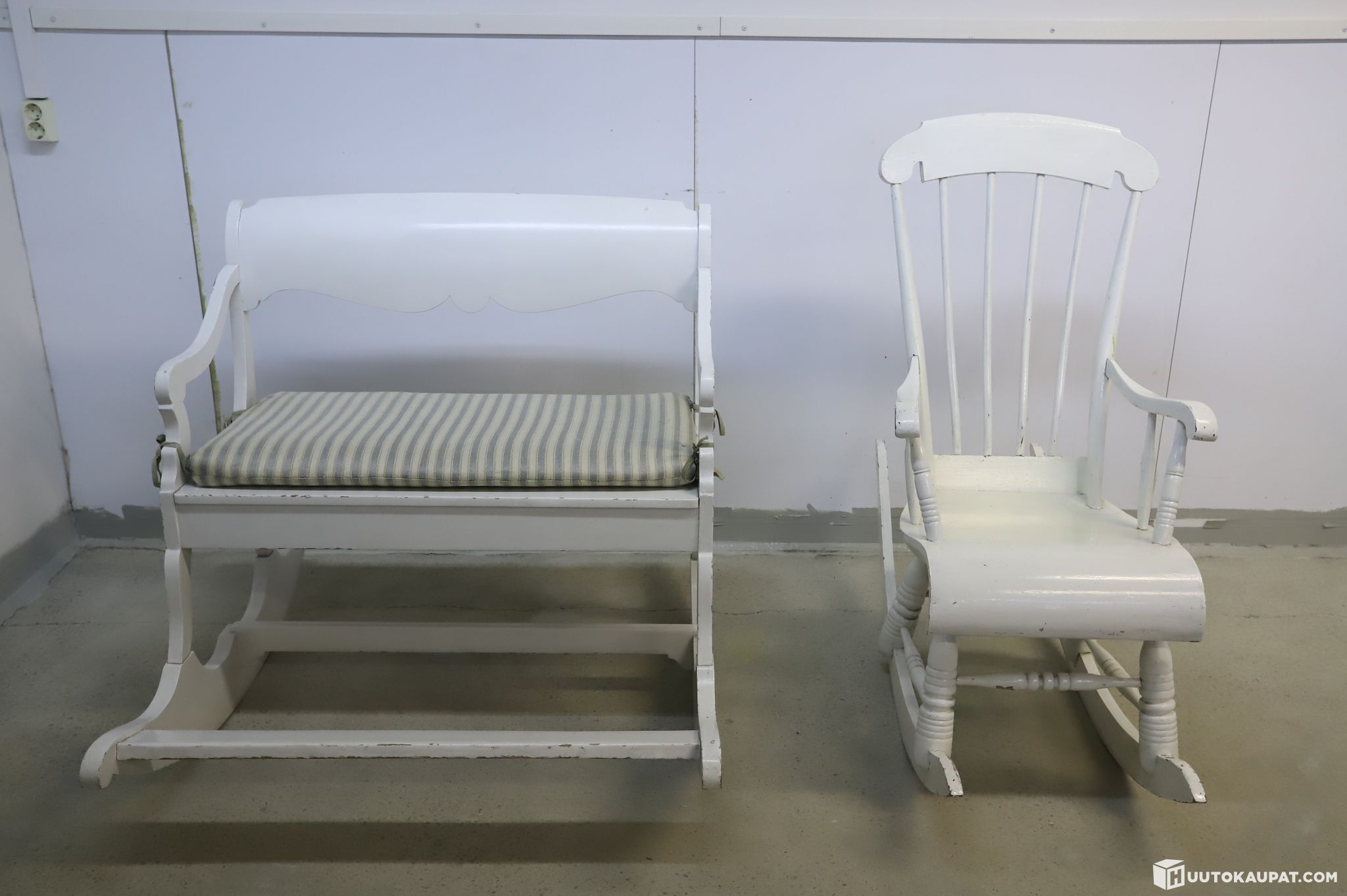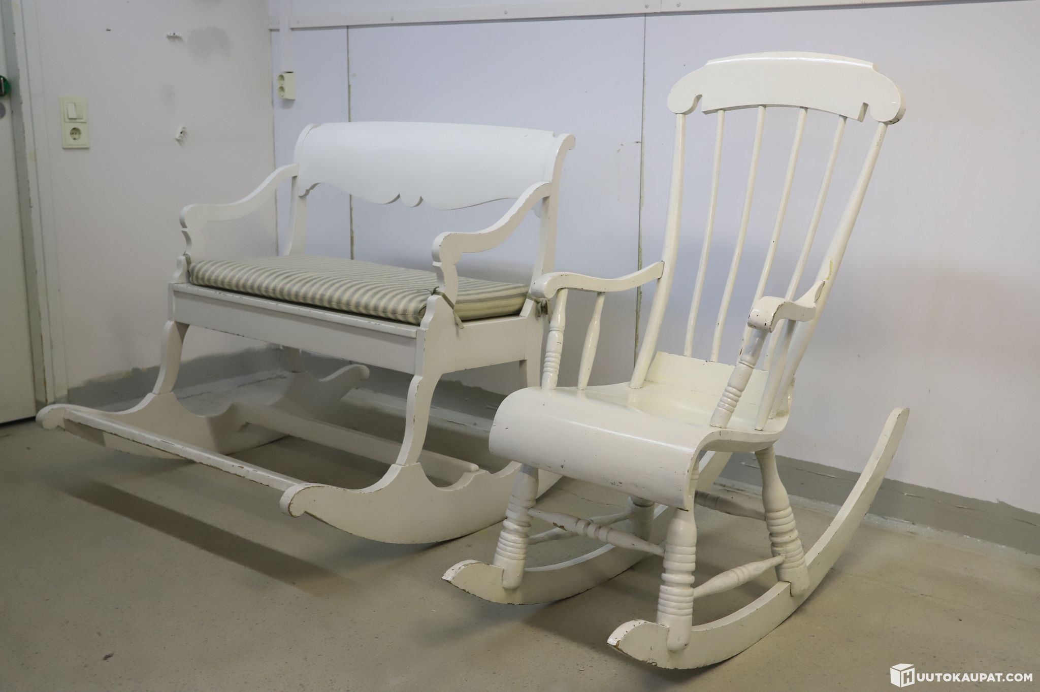 Myydään kaksi kaunista, valkoiseksi maalattua keinukalustetta. Erityisenä harvinaisuutena mukana on leveä keinusohva, jossa kaksi mahtuu keinumaan rinnakkain. Täydellinen pari kuistille, takkahuoneeseen tai osaksi klassista sisustusta.