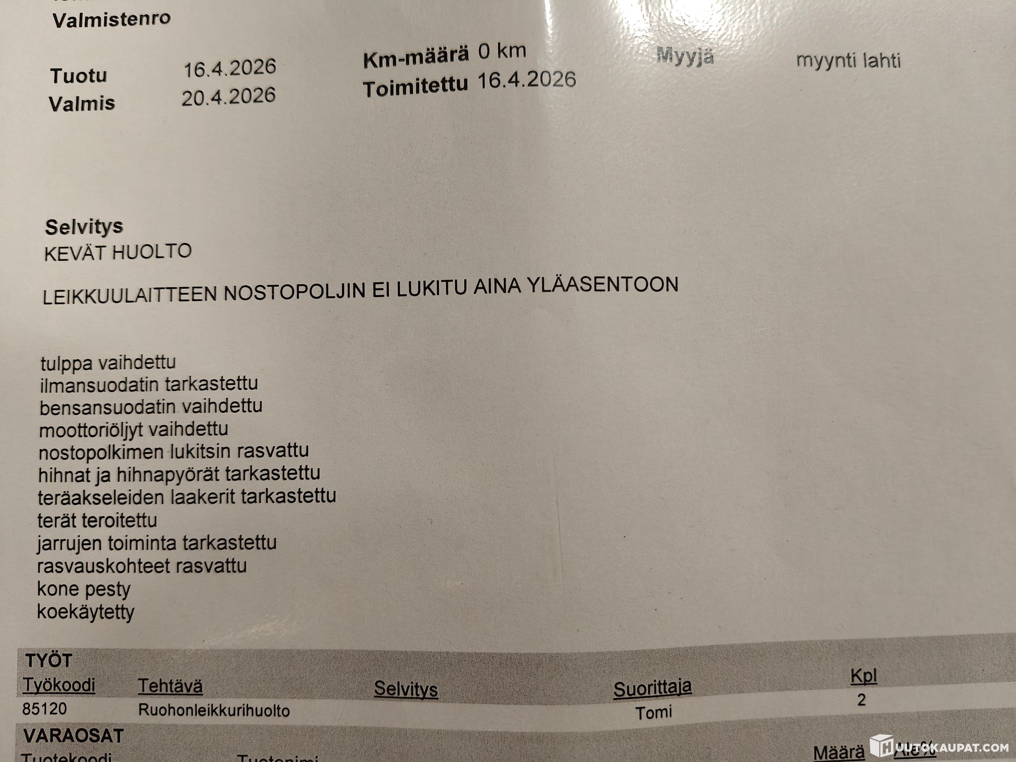 Hautala Service / Oikea Konekauppa Pro Oy ilmoittaa, Huutokaupat.com myy