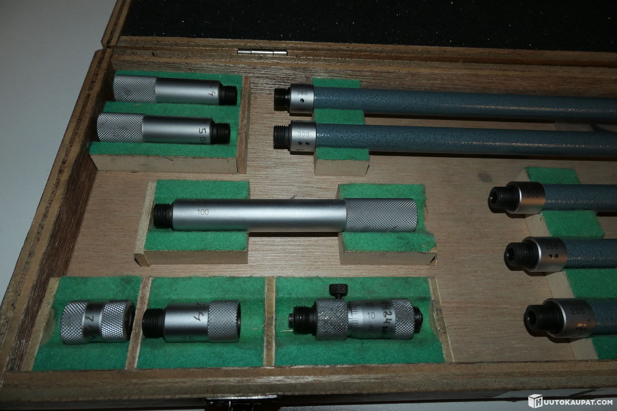 Varusteet: Alkuperäinen säilytyskotelo, mikrometripää ja ilmoituksen kuvissa näkyvät jatkovarret