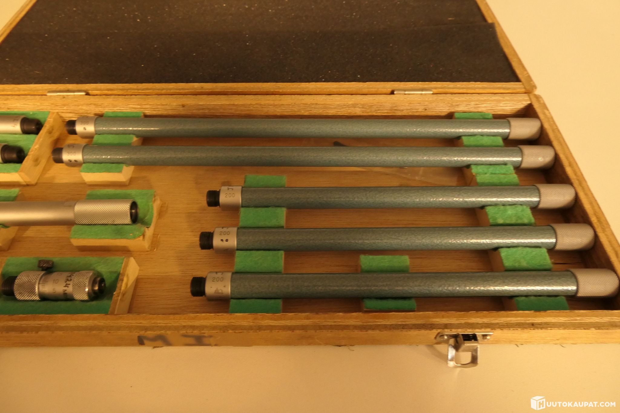 Huudettavana arvostetun japanilaisen Mitutoyon valmistama ammattitason sisämikrometrisarja jatkovarsilla (malli 137-205). Putkimallinen sisämikrometri on erinomainen työkalu suurten sisähalkaisijoiden, kuten sylinterien ja isojen putkien, tarkkaan mittaamiseen teollisuudessa ja koneistuksessa.
