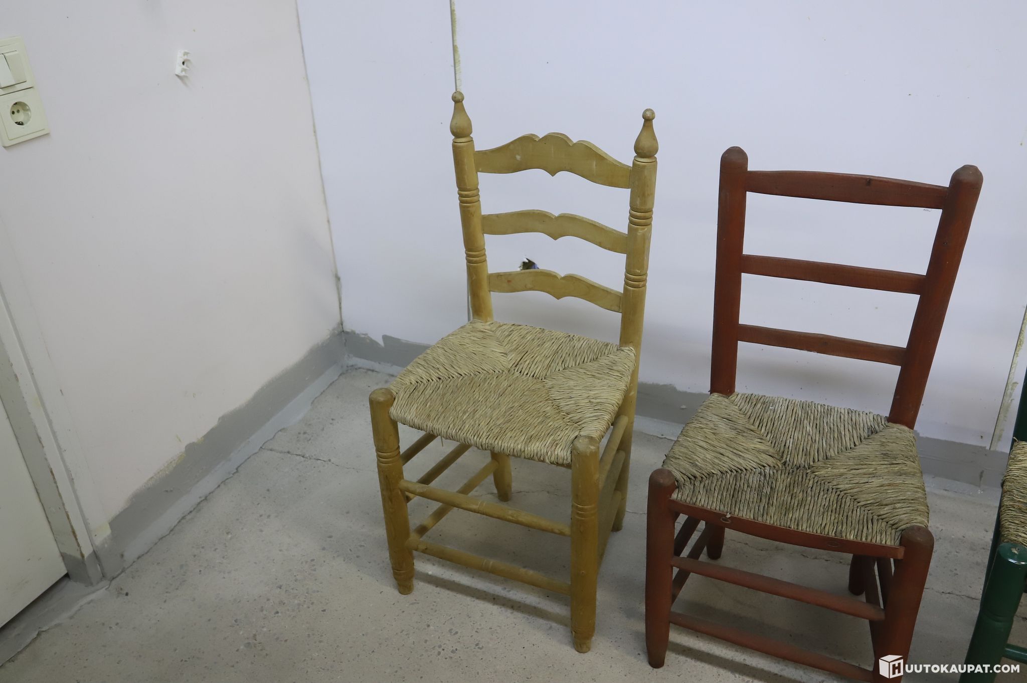 Tuolit ovat käytettyjä ja niissä on luonnetta antavaa patinaa sekä käytön jälkiä maalipinnassa. Ne ovat toimivia ja viehättäviä.
