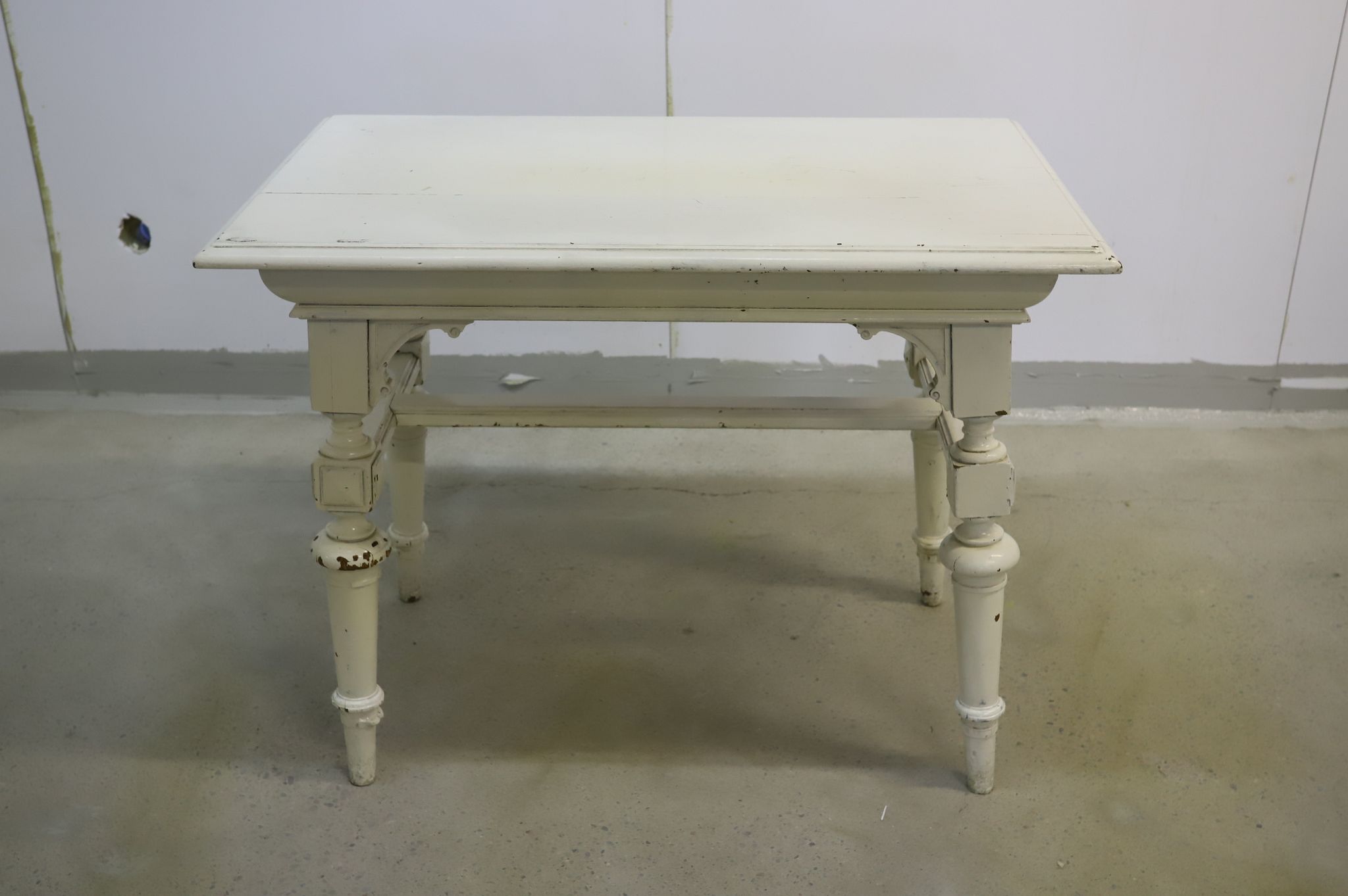 Kunto: Pinnassa on tyylikästä patinaa ja pientä maalichippiä (shabby chic -henkinen), rakenteellisesti ehjä.