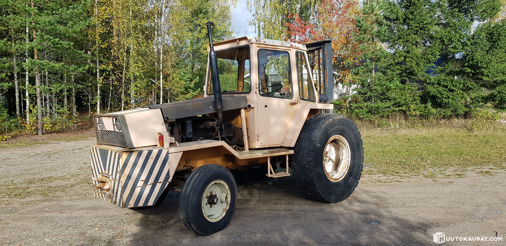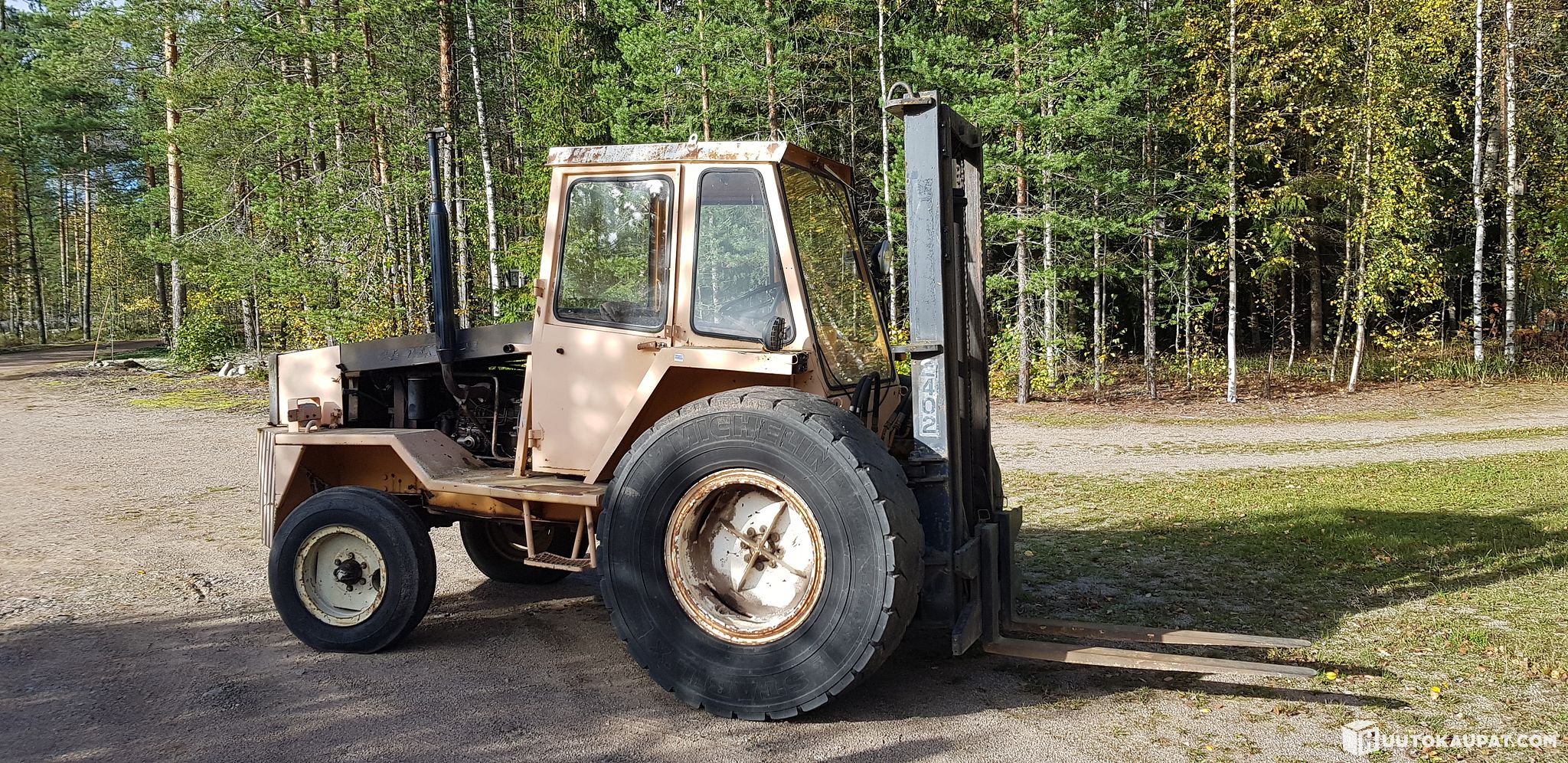 Huollettu käyttötunteihin nähden ajallaan. Jarrut toimii. Moottorinlämmitin. Toinen kallistussylinteri vähän vuotaa, toimii kyllä noinkin.