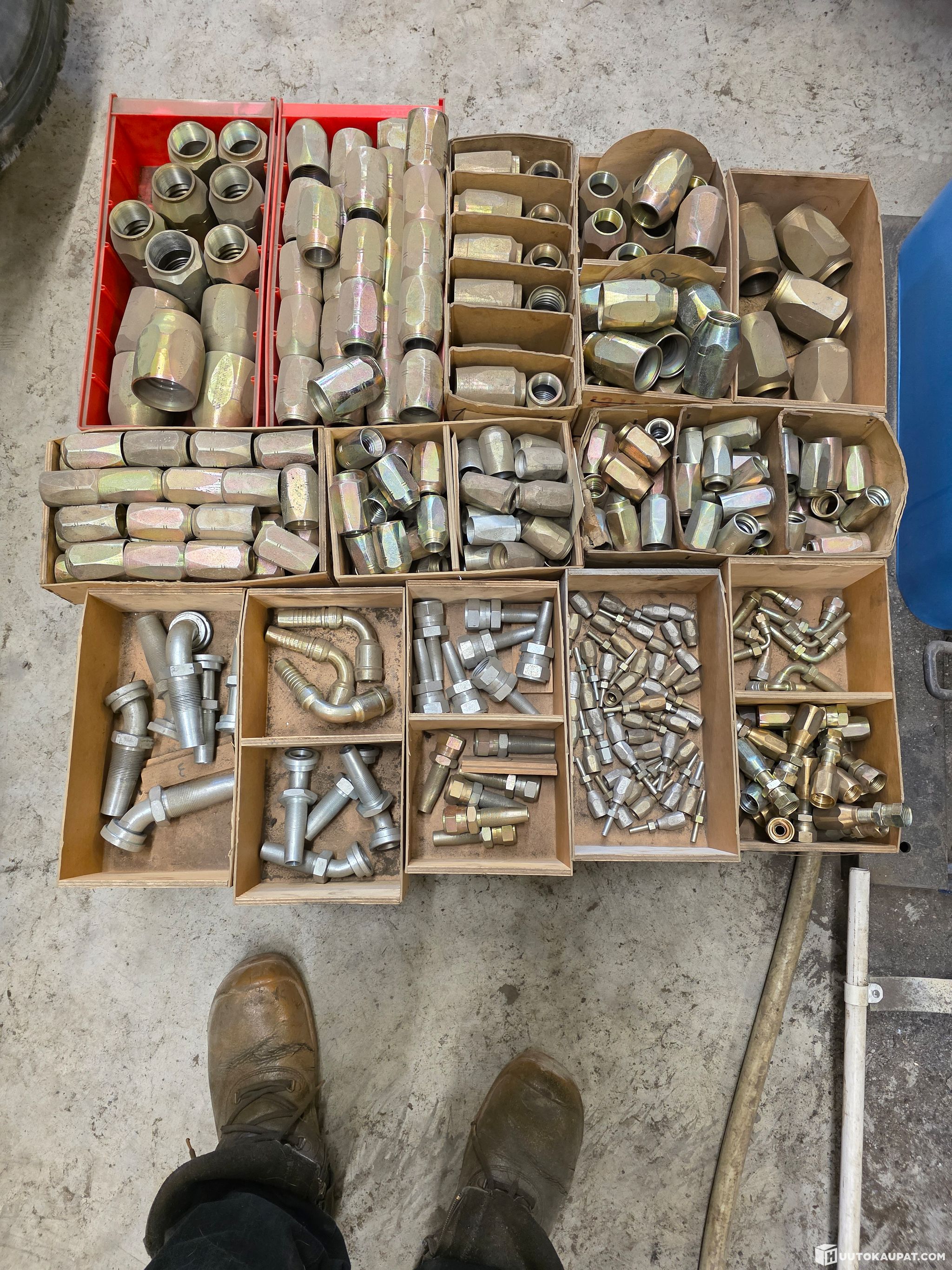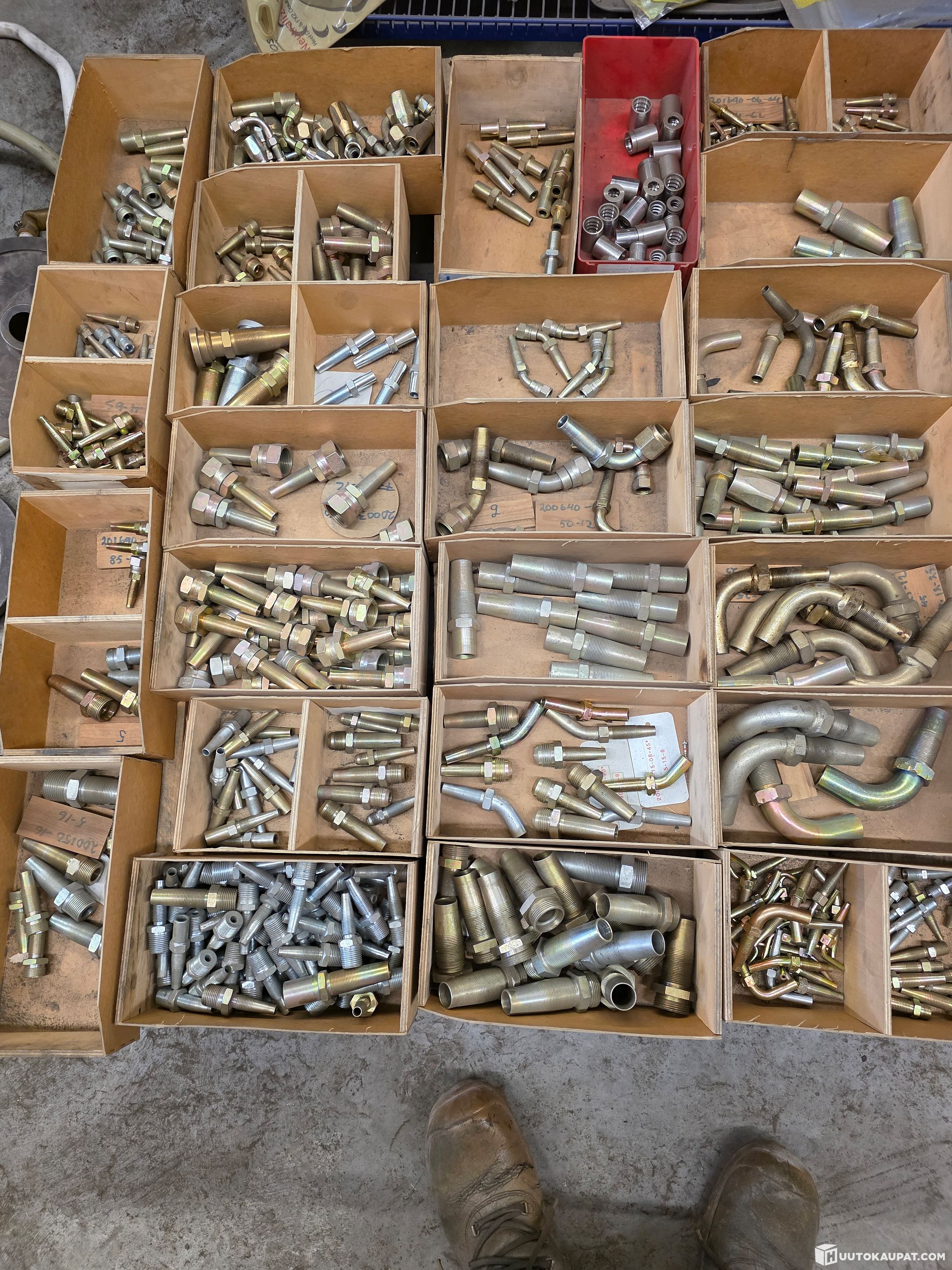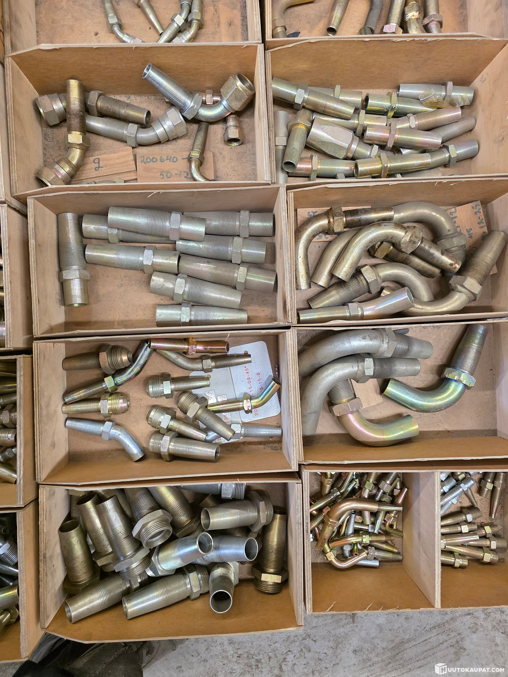 kuvien mukaisia kierrettäviä hydrauliletkun liitoksien osia osia, isoa ja pientä