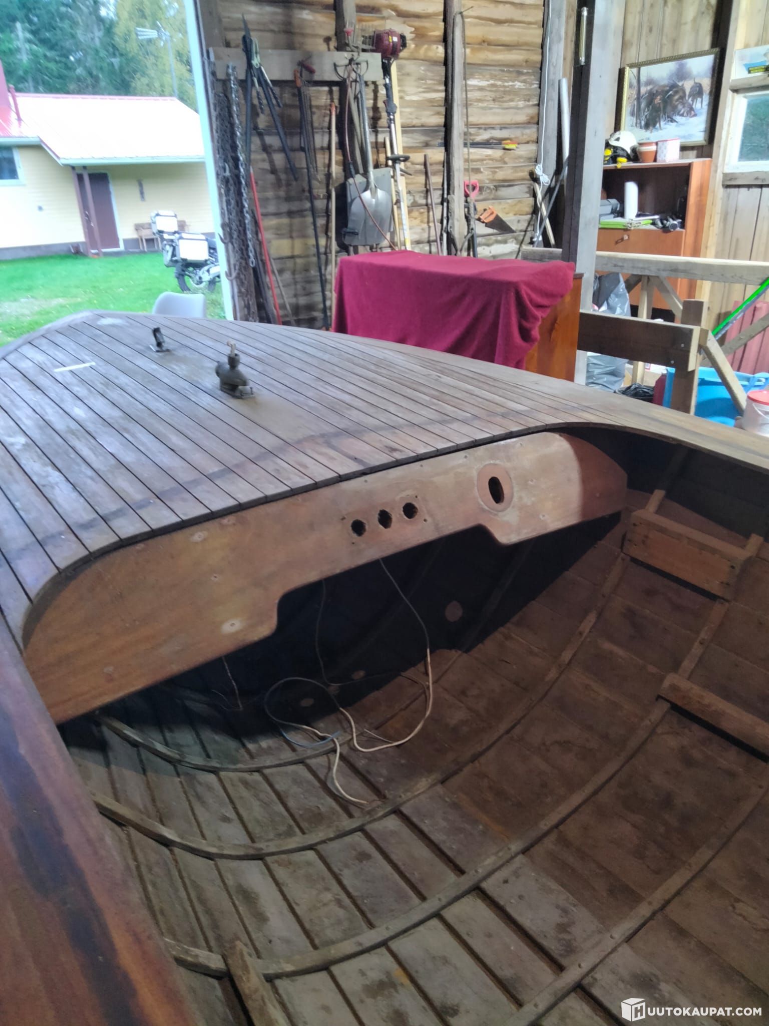 Kaksi viimeistä kuvaa saman tekijän veneestä, joka on kannet rimottanut, ja tehnyt valmiiksi, kuvissa kannet eivät ole lakattu. Mutta kuvista näkee, juuri tuollaiset kannet Veneessä on. Jälki on todella hienoa.
