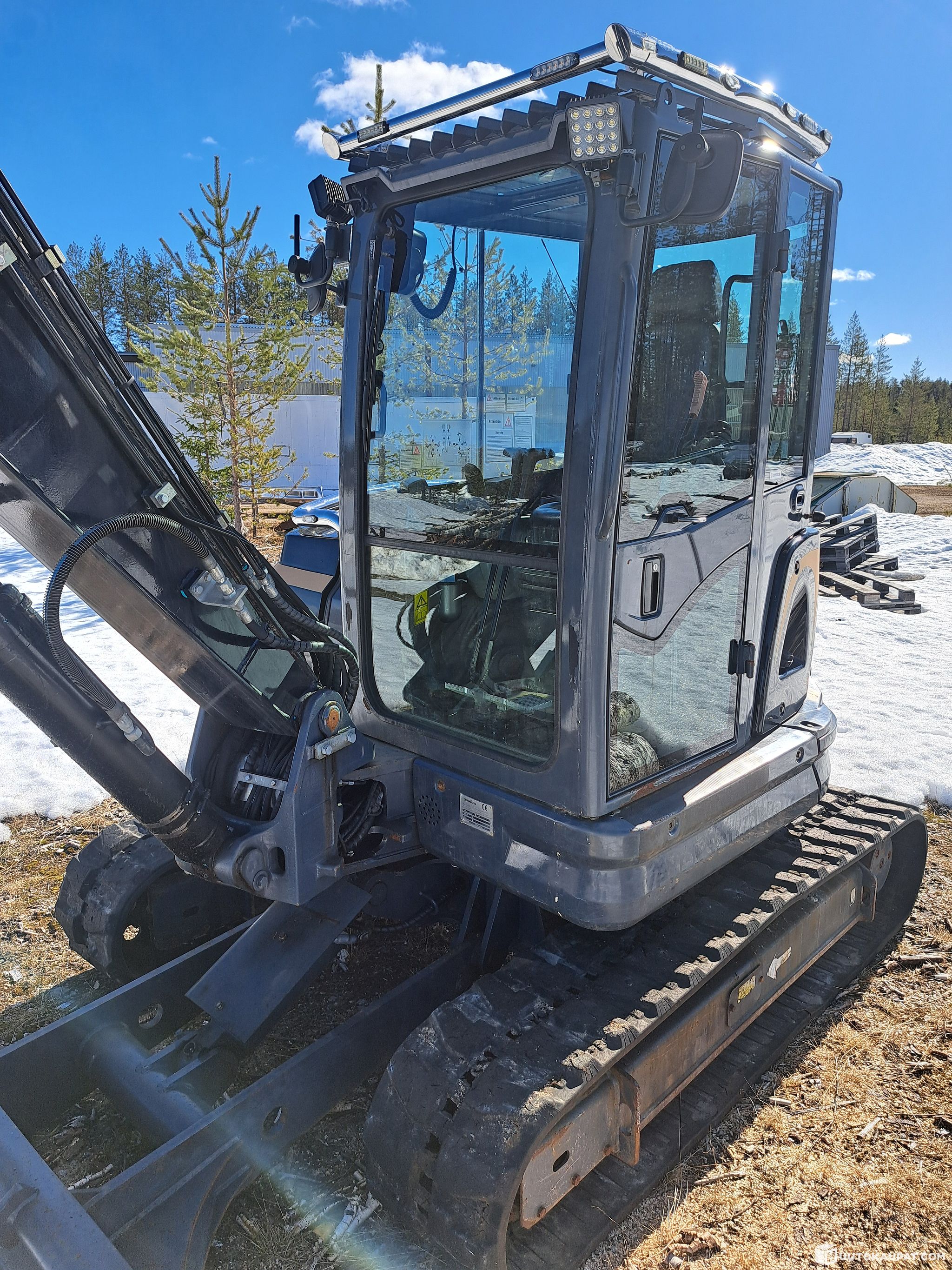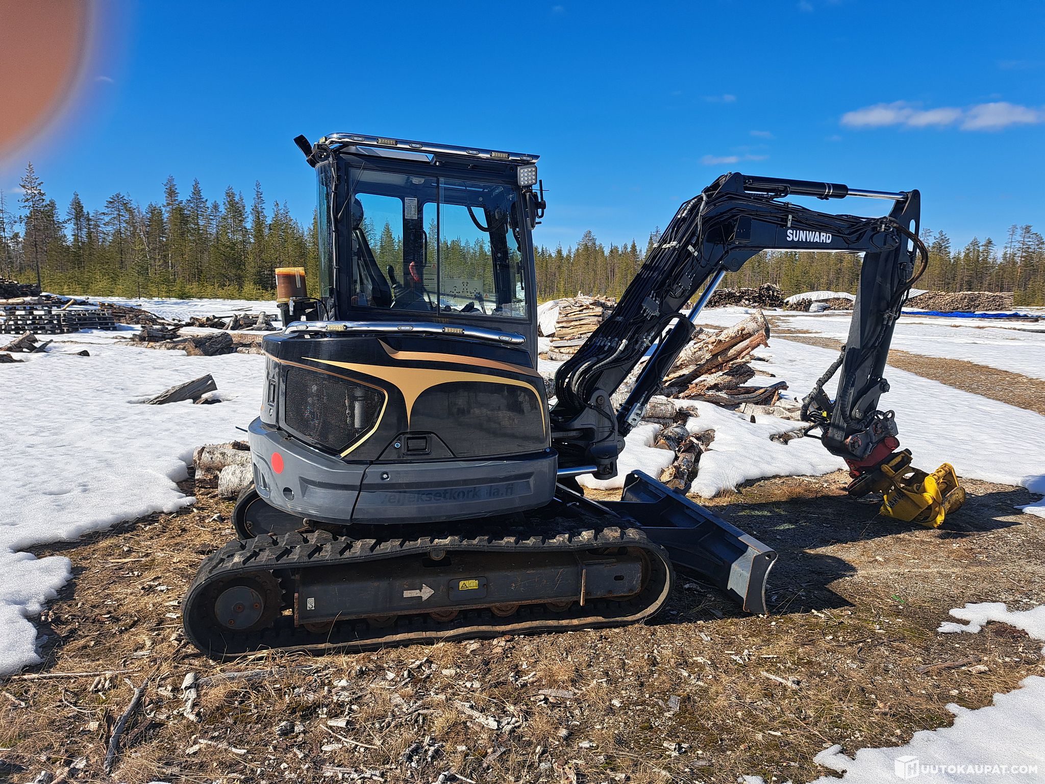 Olis jouten toimiva 6t kaivinkone, ollut meillä pari vuotta kourimishommissa polttopuiden teossa. Eli koneeseen tulee kuluneiden luiska- ja kaapelikauhojen lisäksi melko tuore Vahvan koura.