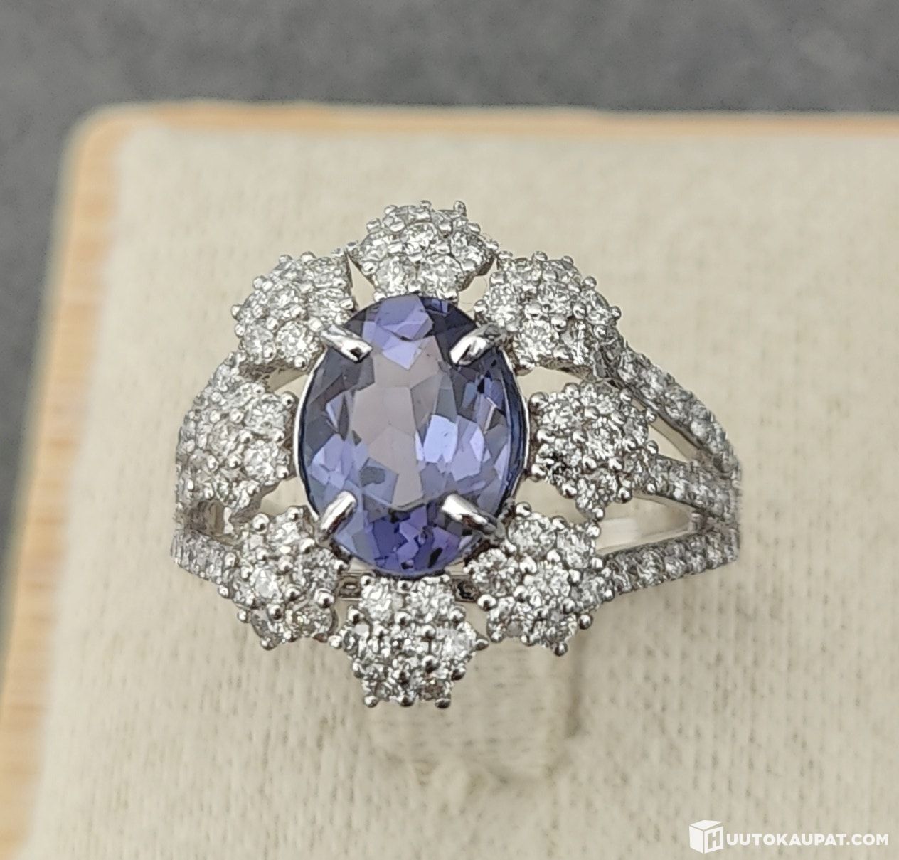 🟡 Upea 18 karaatin valkokultainen timanttisormus isolla luonnon tansaniitti jalokivellä ja huikealla määrällä timantteja! Edullinen lähtöhinta tälläiselle kokonaisuudelle!