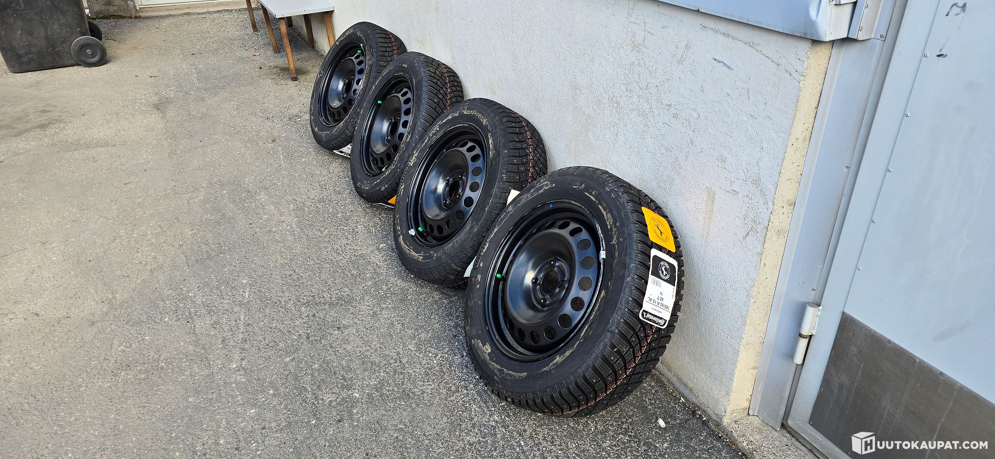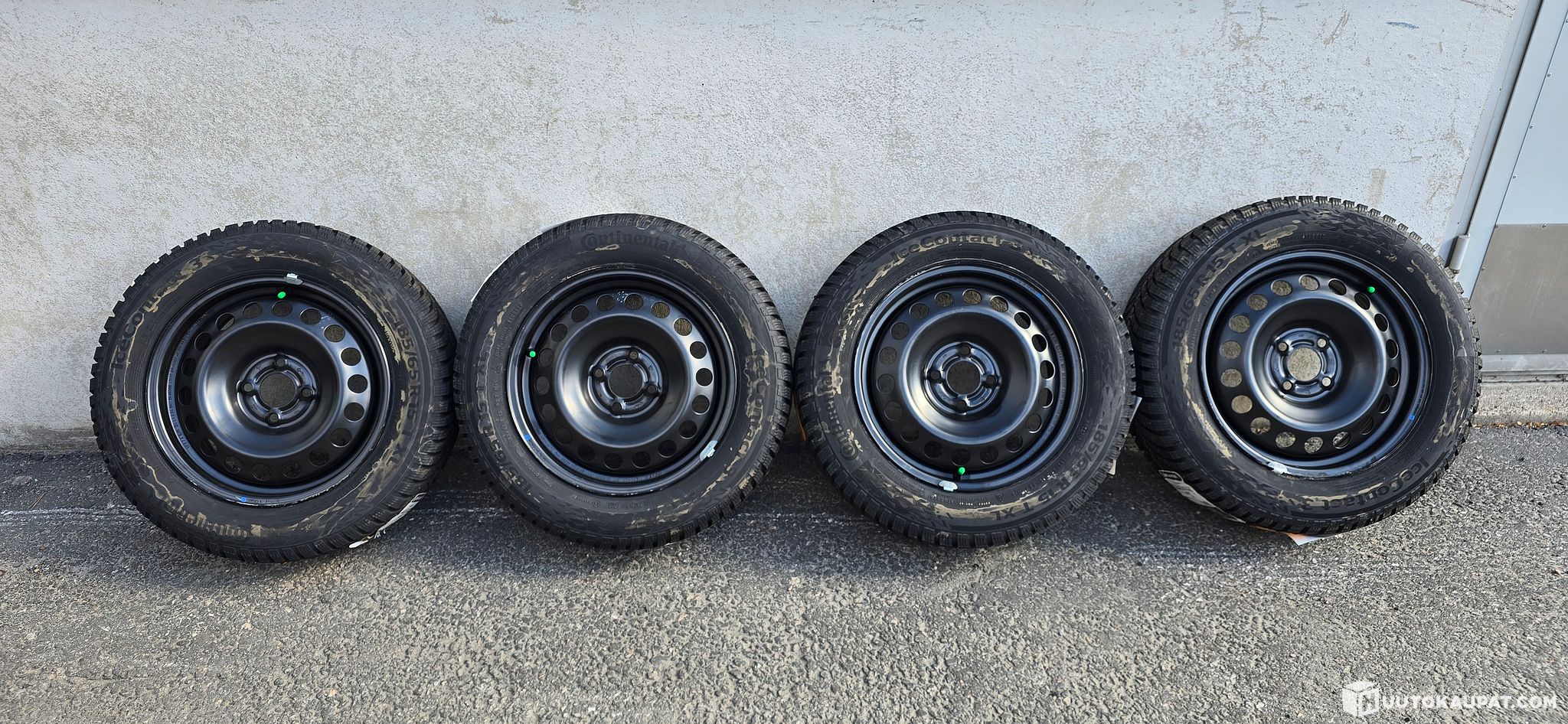 Uusi, ajamaton Continentalin nastarengassetti peltivanteilla. Dacia Dokker alkuperäinen setti.