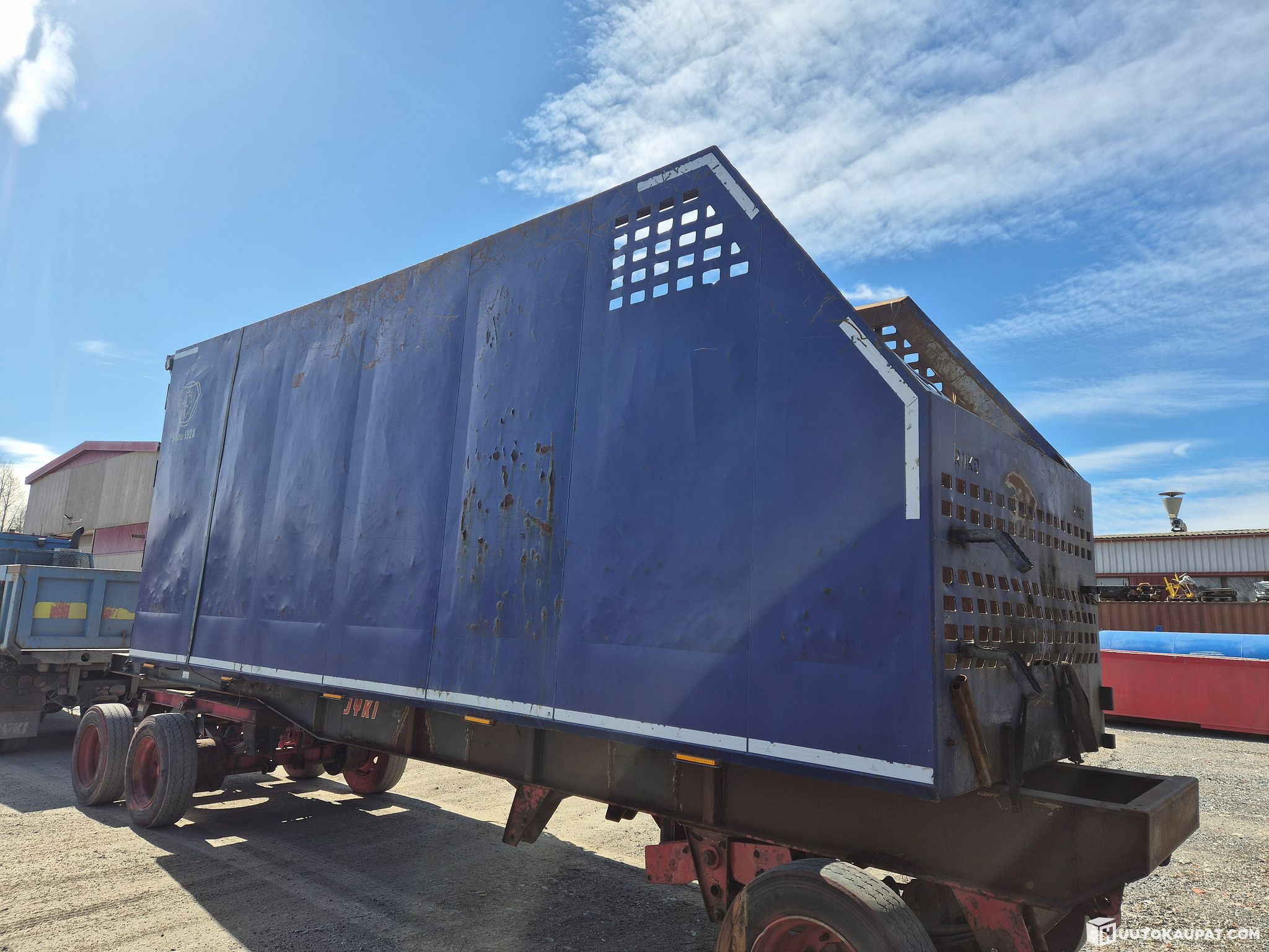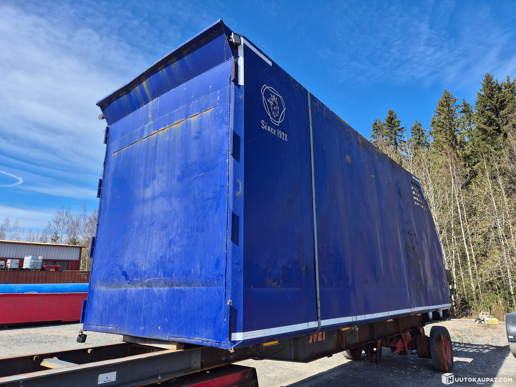 Kuvissa näkyvä kärry ja sidontaliinat ei kuulu huutoon, pelkkä kontti ainoastaan.