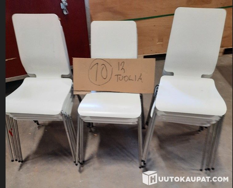 Valkoisia tuoleja 12 kpl kerralla.Emme anna mitään takuita tuotteiden kunnosta. Emme ota mitään vastuuta kuvien ja nimikkeiden oikeallisuudesta tai määristä. Myydään tässä kunnossa ilman mitään takuita.
