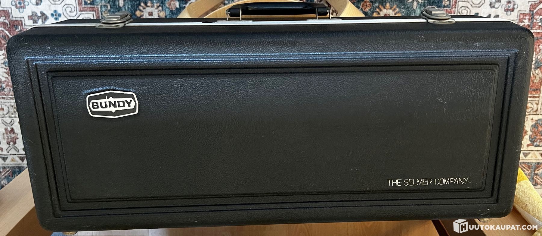 mukana soitin, suukappale, lehtipari, putsari ja laukku.