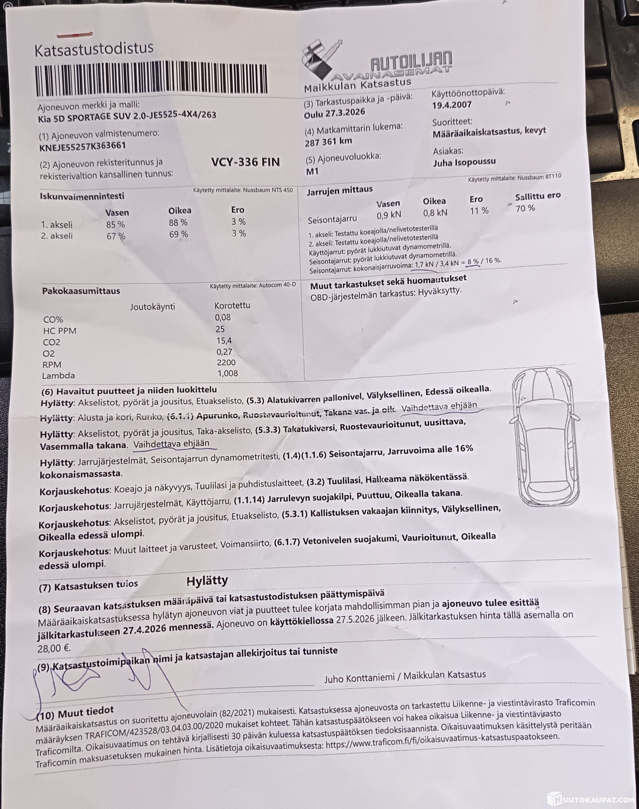 Tammikuussa tehty 900€ jakopääremontti ja viimevuonna jarrut tehty näistä kuitit.