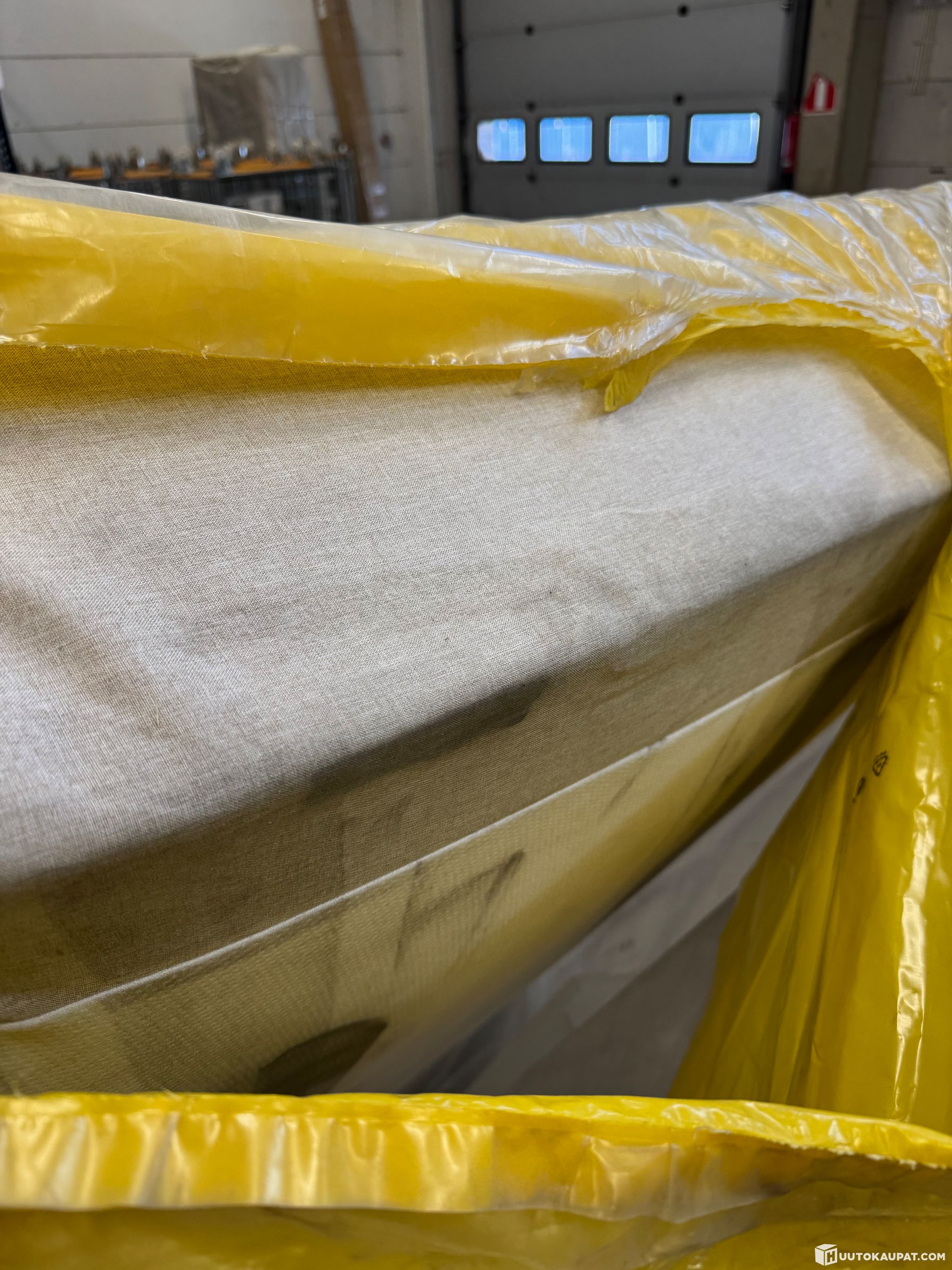 Hoito-/pesuohje teksti: Runko- sekä petauspatjaa suositellaan kääntämään 2-4 kertaa vuodessa niin, että pääpuoli vaihtuu jalkopääksi, jotta patja painuu tasaisesti. Runkopatjassa kiinteä verhoilu, jota voi kostealla pyyhkiä.