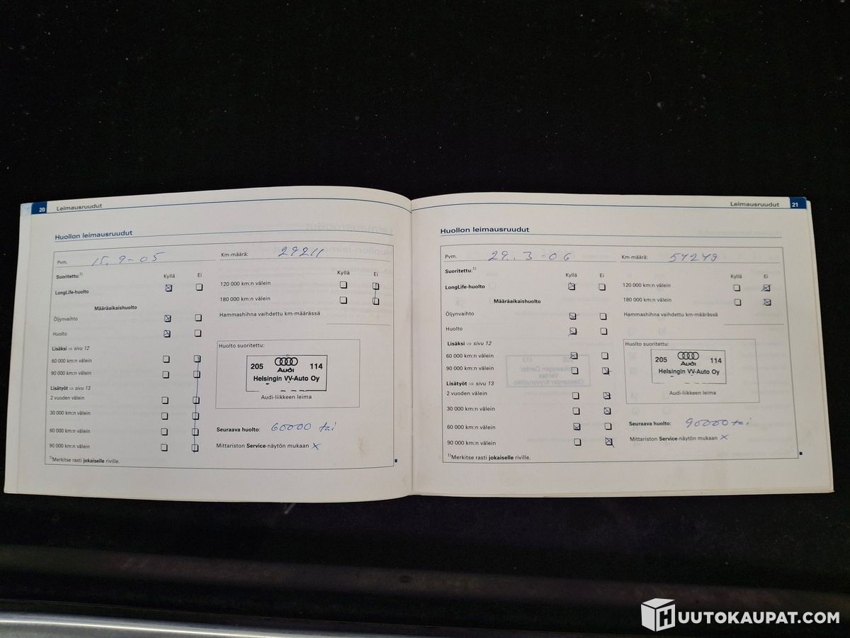 - Apparin etulasi ei nouse eikä laske, todnäk vaijeri irti / poikki kun moottori pyörii. Kuskin puolen etulokasuojaa pakkeloitu joskus. Ruostekohtia löytyy (kuvat). Huoltoa pyytää, edellinen omistaja joskus vaihdellu öljyjä (ei merkintää missään). Huoltokirjassa 2020-vuoteen merkinnät. Ovenkahvan kuori puuttuu kuskin ovesta.