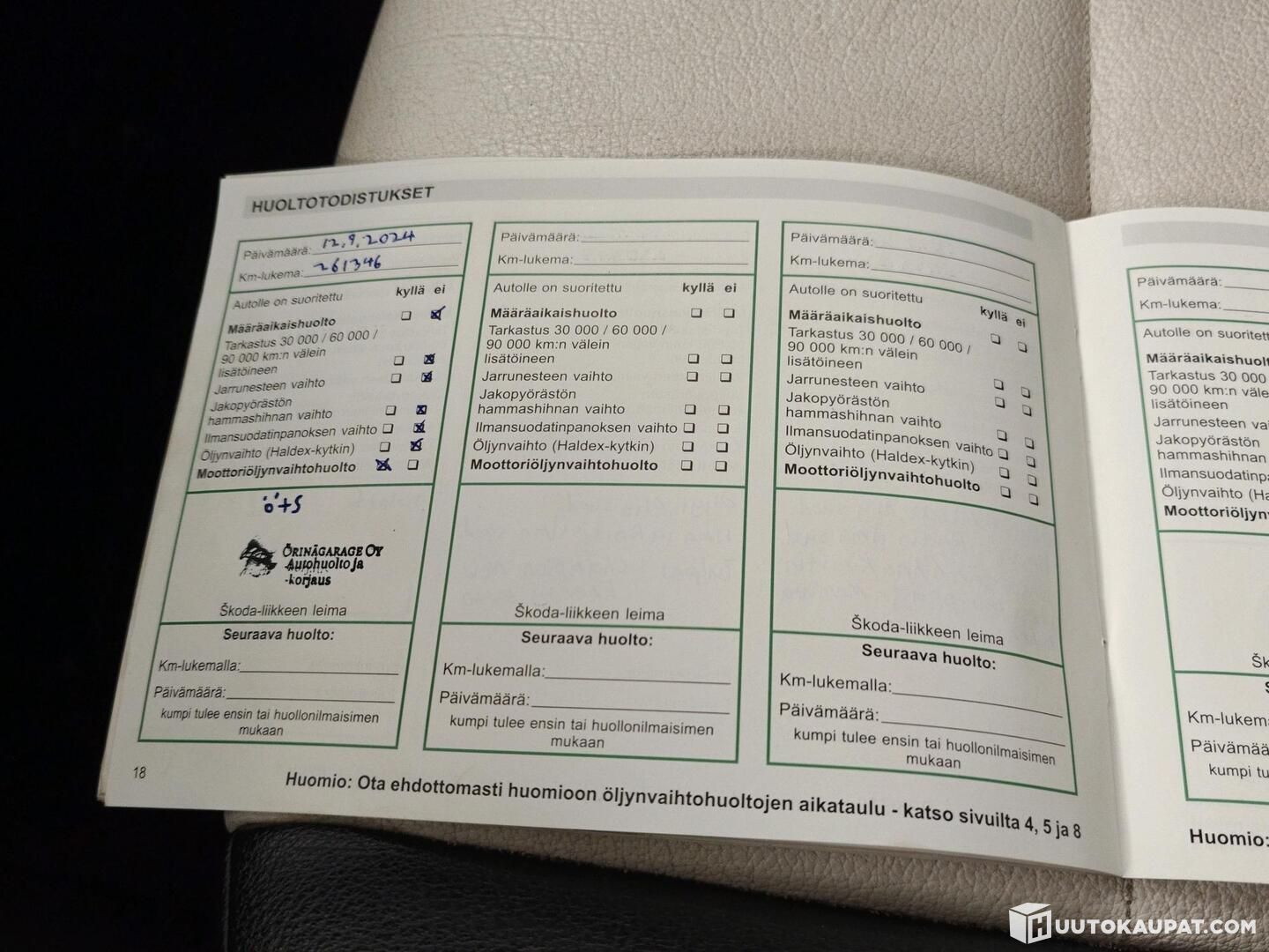 Huoltohistoria (tositteet tehdyistä huolloista)
