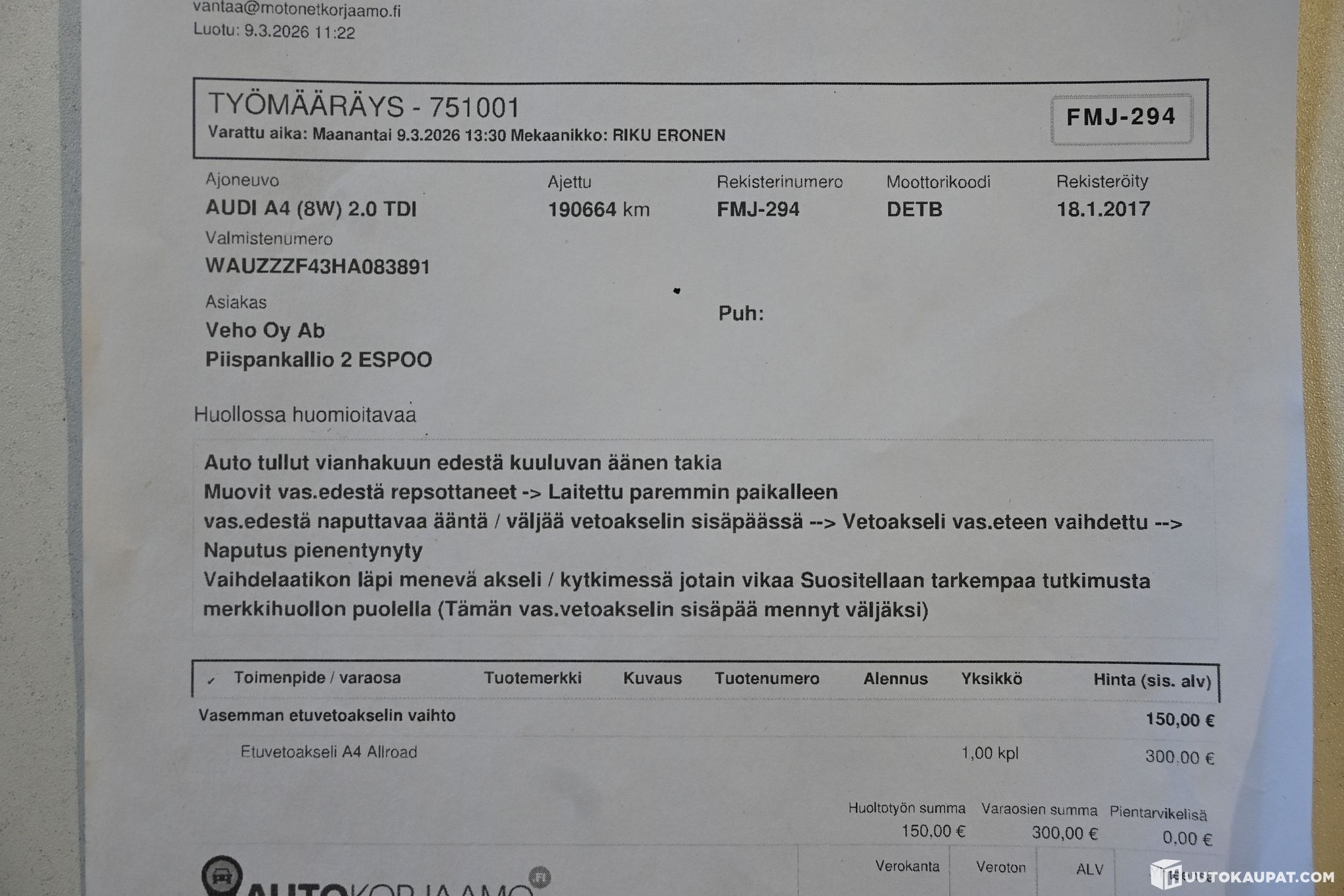 Pasin Auto ja Maalaus ilmoittaa, Huutokaupat.com myy