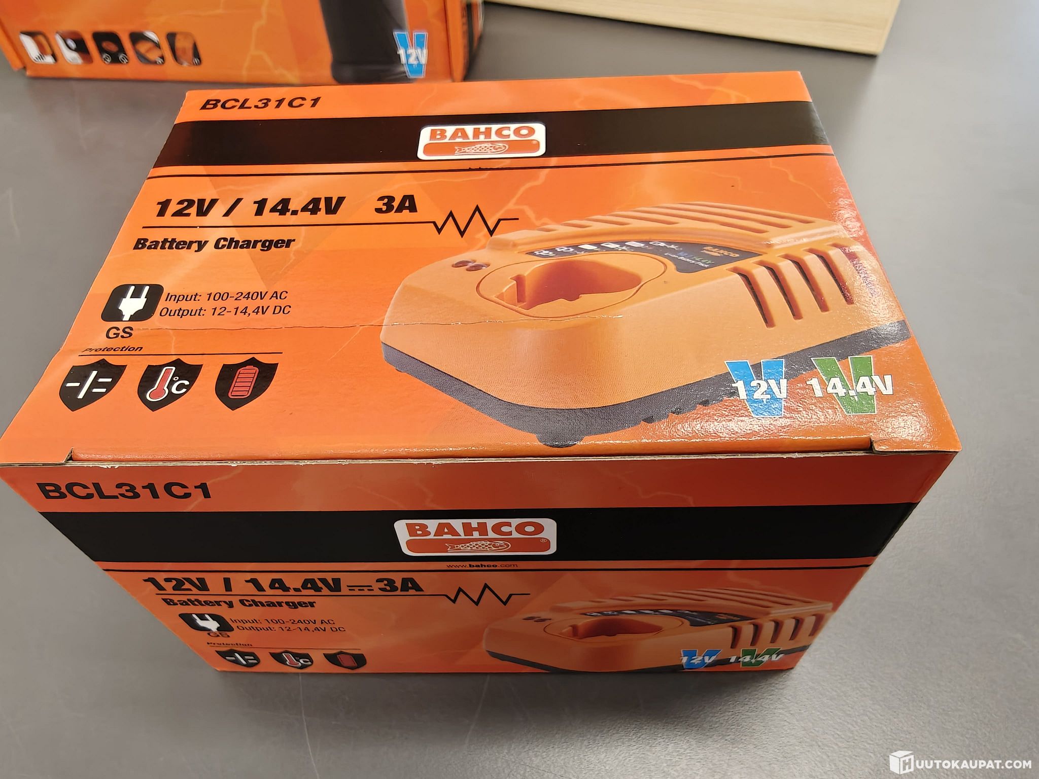Laturi on kahden jännitteen laite, jolla voi ladata Bahcon 12 V:n ja 14,4 V:n akkuja.