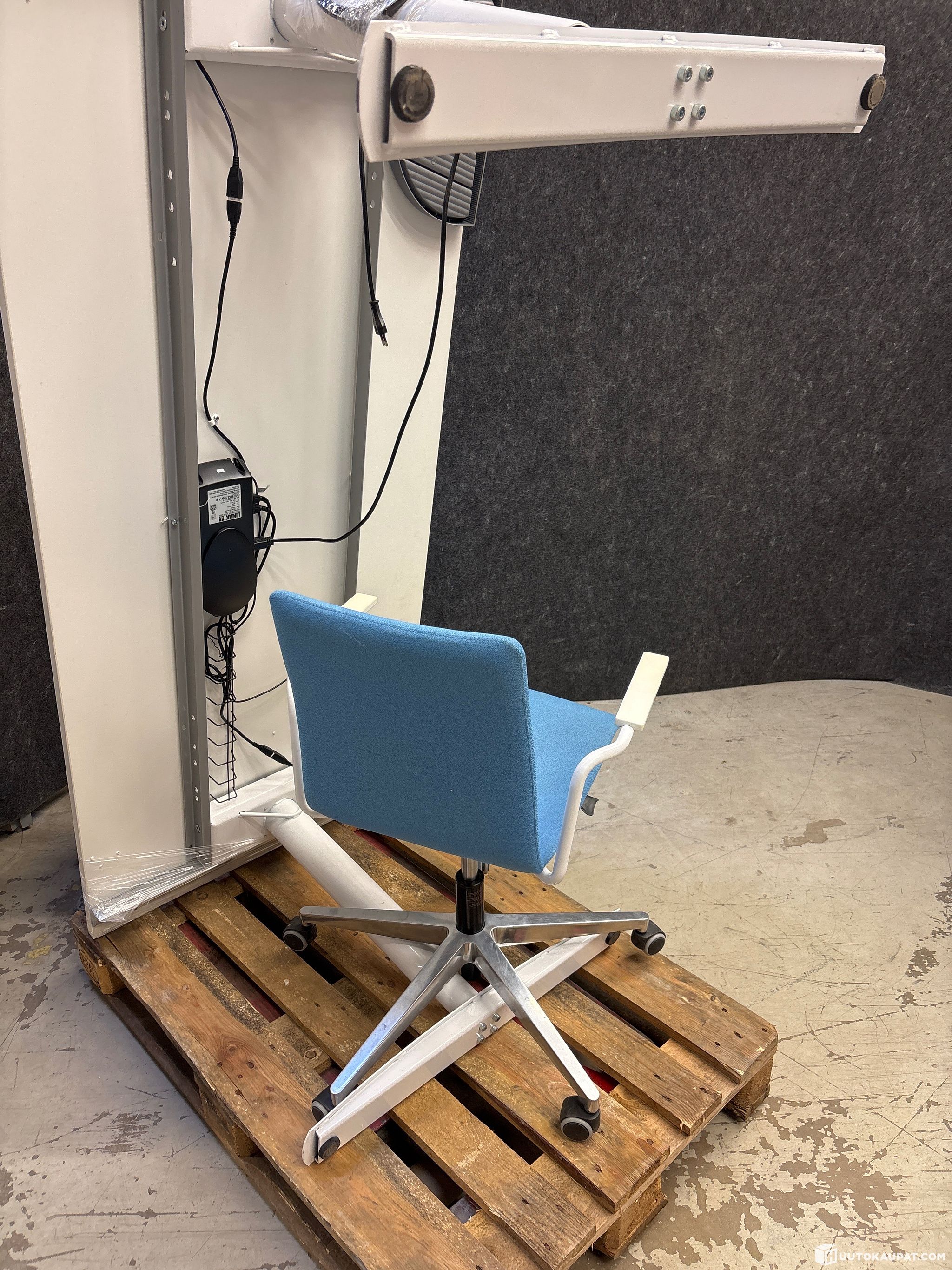 Sähköpöytä ja toimistotuoli. Testatut säädöt. Pöytälevyn mitat: 180cm x 80cm.
