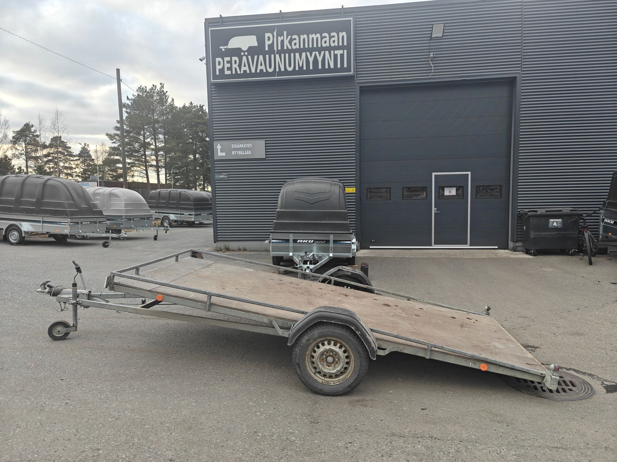 Käytetty, meille ajamalla tuotu peräkärry. Havainnollistavat kuvat kertovat kärryn kunnon.