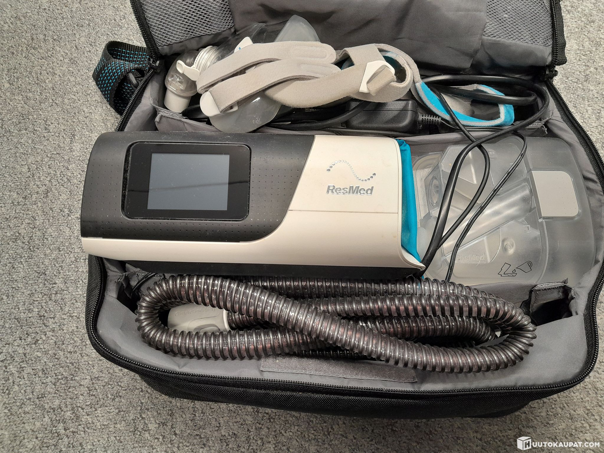 Yhteensopiva standard- ja lämpöletkun kanssa. Lämpöletku, esimerkiksi ClimateLineAir 11, pitää ilman lämmön tasaisena ja ehkäisee kosteuden tiivistymistä letkuun. Nämä ominaisuudet edellyttävät, että hankit integroidulla kostuttimella ja ClimateLineAir-letkulla varustetun AirSense 11 AutoSet ‑laitteen.